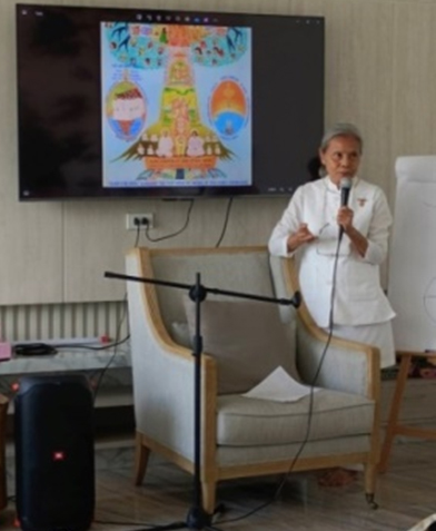 ตอนเช้าพี่หญิงทำหน้าที่แนะนำให้นักเรียนรู้จักตัวเอง ...ดวงวิญญาณ…และดวงวิญญาณสูงสุด ผู้เป็นพ่อสูงสุด