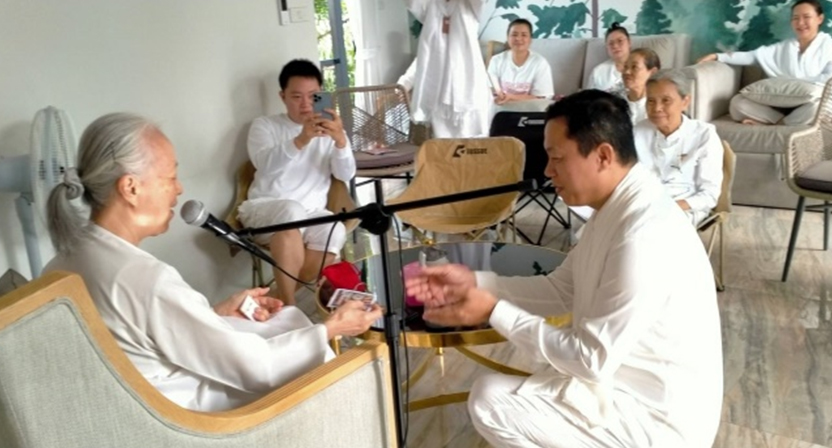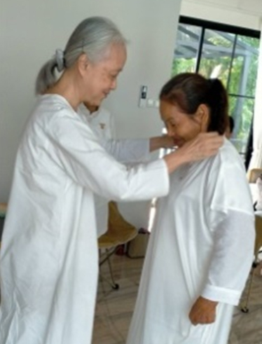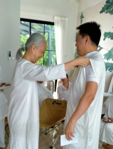 พี่หล้ามอบพร และสวมชุดขาว ให้กับพี่หมงและพี่นี ที่ตั้งใจรับบทเรียนจนครบ 7 บท