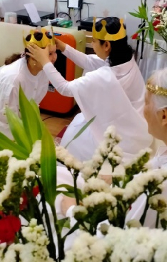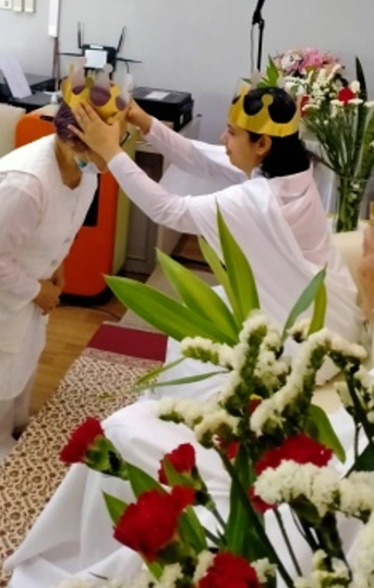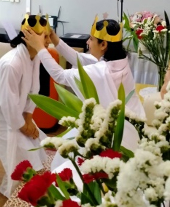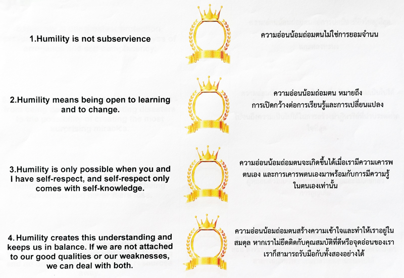 ทุกคนได้รับมงกุฏแห่งความถ่อมตน พร้อมประเด็นความถ่อมตนให้อ่านตามหมายเลข(ติดไว้ด้านหลังมงกุฎ) ก่อนรับการสวมมงกุฏจาก Sr.Shweta เตรียมพร้อมเป็นราชาที่ถ่อมตน และรู้ค่าทุกคนจากหัวใจ
