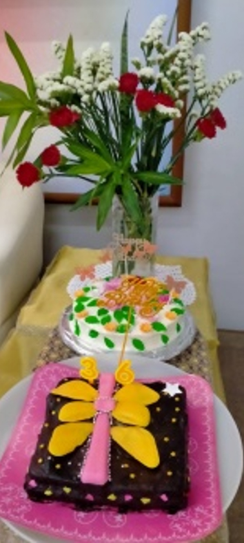 ร่วมกันตัดเค้กจากคุณป้าและคุณมาลินี ด้วยความสุข
