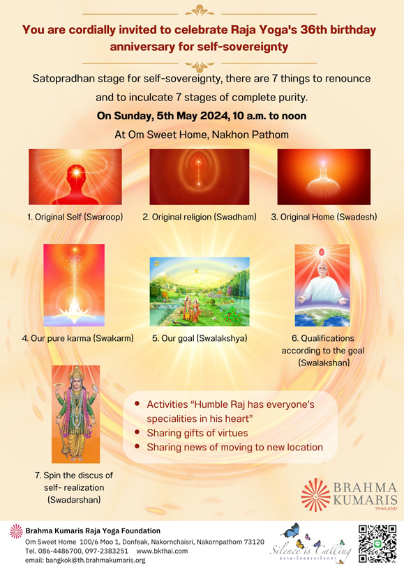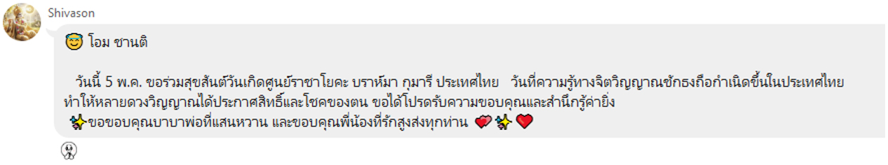โอม ชานติวันนี้ 5 พ.ค. ขอร่วมสุขสันต์วันเกิดศูนย์ราชาโยคะ ประเทศไทย วันที่ความรู้ทางจิตวิญญาณชักธงถือกำเนิดขึ้นในประเทศไทย ทำให้หลายดวงวิญญาณได้ประกาศสิทธิ์และโชคของตน ขอได้โปรดรับความขอบคุณและสำนึกรู้ค่ายิ่ง ขอขอบคุณบาบาพ่อที่แสนหวาน และขอบคุณพี่น้องที่รักสูงส่งทุกท่าน ❤ พี่ Chitinan
