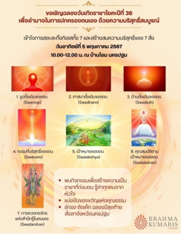Sr.Shweta แบ่งปันประสบการณ์ชีวิตราชาโยคี 7 ท่านแบ่งปันประเด็นความบริสุทธิ์สมบูรณ์(สาโตประทาน Satopradhan) ด้วยสภาพทั้ง 7 ของตัวตนที่แท้จริง ก่อนจุดเทียนในมงกุฎ