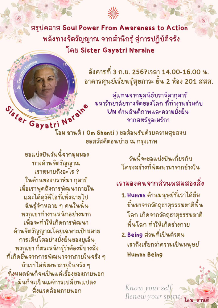 Sr.Gayatri ในประเทศไทย (30 ส.ค. - 4 ก.ย. 24) |