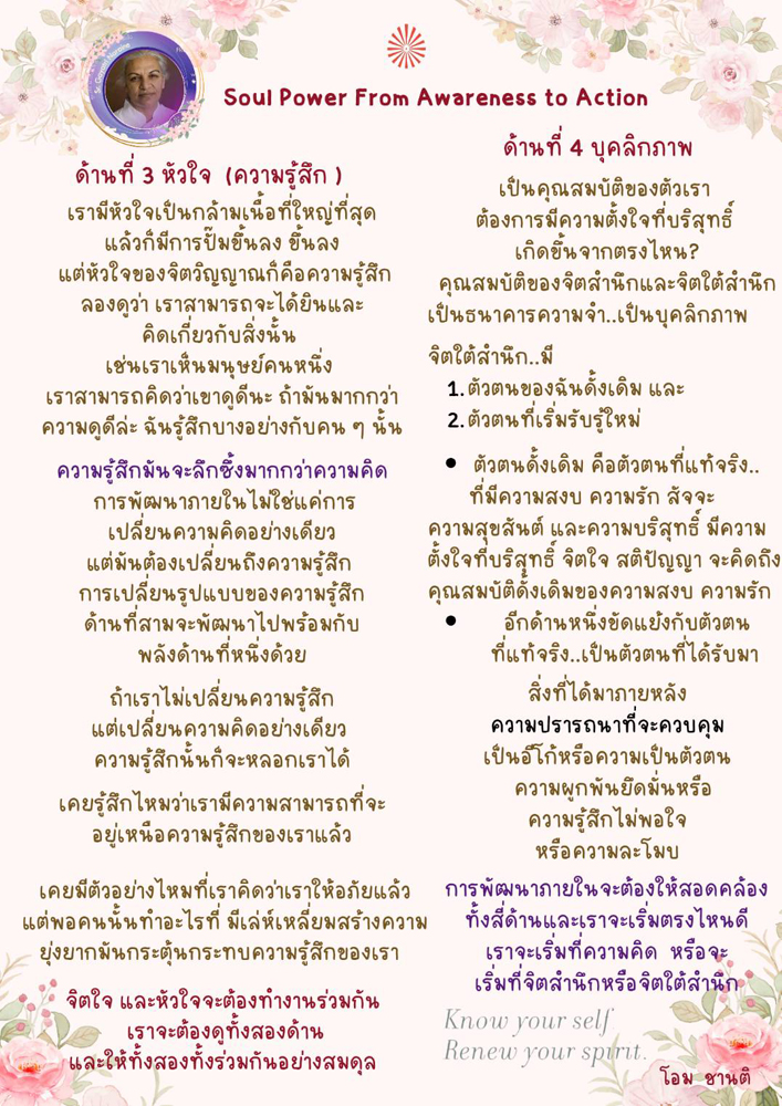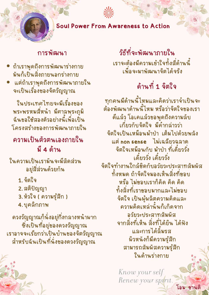 เป็นคลาสด้านจิตวิญญาณที่ยอดเยี่ยมนี้ถ่ายทอดออกมาเป็นความรู้เชิงปฏิบัติที่กระชับและชัดเจนให้กับชาวไทยที่มีภูมิหลังหลากหลาย! Sr.Gayatri ได้สร้างสรรค์เรื่องราวเกี่ยวกับพระพรหม 4 หน้า ซึ่งเป็นที่รู้จักกันดีในชุมชนชาวไทย