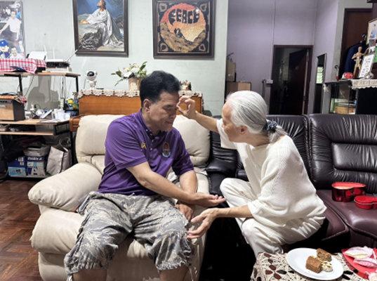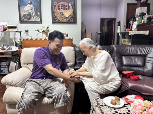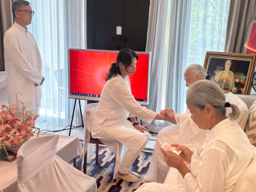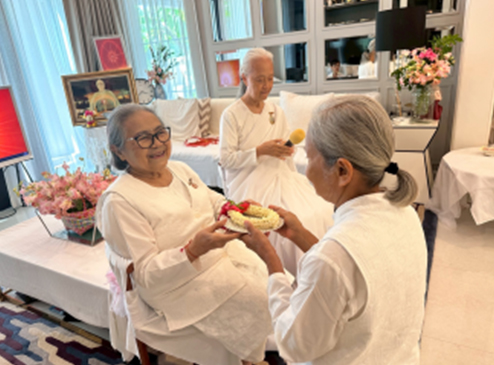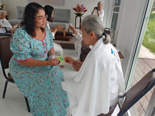 พี่ภาเป็นตัวแทน มอบพวงมาลัยให้คุณป้าวัลภา ในฐานะผู้เป็นแม่หล่อเลี้ยงยักย่าผ่านอาหารและขนมหวานที่ทำด้วยความรัก และมีความกระตือรือร้นเสมอสำหรับงานรับใช้แม้ในวัย 85