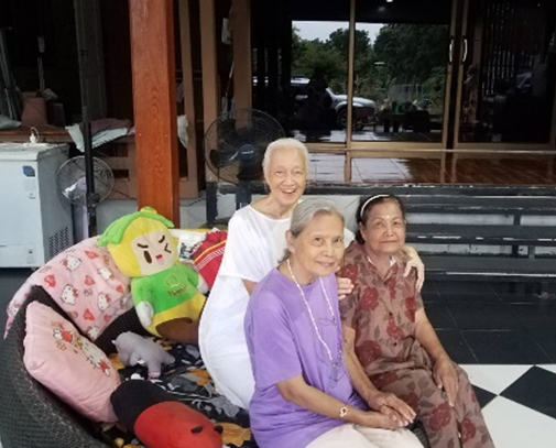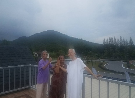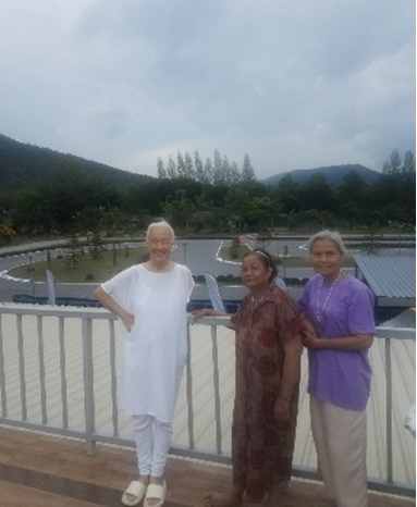 3 สาววัย 74 เกิดปีเถาะเหมือนกัน ไม่ย่นย่อถ่อสังขารขึ้นไปบนดาดฟ้า Café เพื่อชมวิวที่สวยงาม คุณแม่เพลิน...ภาคภูมิใจที่อยู่ใกล้ภูเขา ที่เหมือนภูเขาฟูจิในญี่ปุ่น
