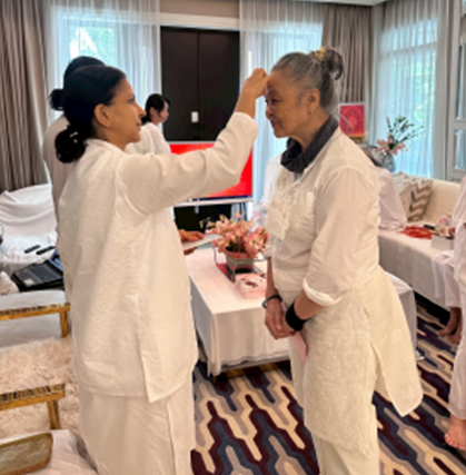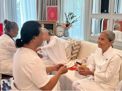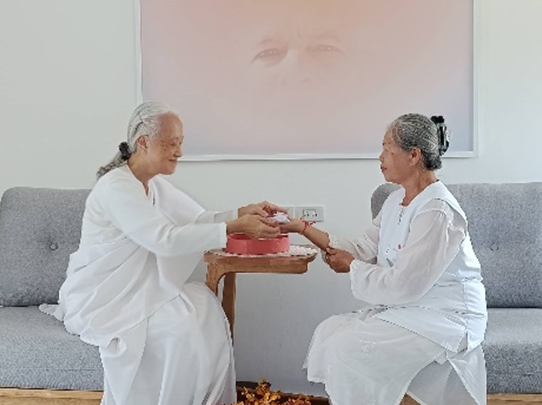 สำหรับวันแม่แห่งชาตินี้ ผู้เป็นแม่บางท่านได้ช่วยกันแบ่งปันประเด็นหล่อเลี้ยงครอบครัวทางจิต ก่อนผูกรัคกี้ช่วงบ่าย 12 ส.ค. @ บ้านนันทวัน (คุณป้าวัลภา) สำหรับคนกรุงเทพฯและปริมณฑล เรามาฉลองเทศกาลรักชบันดานกันที่บ้านคุณป้าวัลภาซึ่งตรงกับวันแม่แห่งชาติ เตือนใจให้เราตระหนักถึงความสำคัญของการหล่อเลี้ยงและการปกป้องคุ้มครองจากบาบาในฐานะที่ท่านเป็นพ่อแม่สูงสุด และขอบคุณดวงวิญญาณเครื่องมือที่หล่อเลี้ยงยักย่า โดยเฉพาะคุณป้าวัลภาที่ทำงานรับใช้ด้วยหัวใจเสมอมาอย่างไม่เคยขาดตอน ในวันนี้คำสอนของบาบาเน้นการมีสายตาที่บริสุทธิ์ของความเป็นพี่น้องแม้ผู้เป็นสามี-ภรรยา พี่หล้าให้ผู้เป็นแม่พูดถึงสาระของความบริสุทธิ์ Sheetal – ติลัก ได้ติด Tilak ‘เพชร’ กลางหน้าผากให้ทุกคน พี่หญิง – การมองตาในสำนึกเป็นดวงวิญญาณ, การผูกข้อมือ แม่ปุ๋ย – การทำสัญญา เป็นการทำสัญญาจากใจที่จะกลับมาบริสุทธิ์ ยกมอบความอ่อนแอหรือความไม่บริสุทธิ์ของเราให้บาบา และทำสัญญาที่จะเปลี่ยนแปลงแก้ไขตนเอง ให้บาบาปกป้องคุ้มครองเราด้วยการเตือนเราถึงคำมั่นสัญญานี้และมุ่งมั่นที่จะก้าวหน้าต่อไปในการยกระดับจิตวิญญาณของเราให้สะอาด เป็นบวก บริสุทธิ์มากขึ้น แม่ปุ้ม – นกยูง ให้ความหมาย 'ความบริสุทธิ์' ของนกยูงที่ประดับบ้านจากตัวจริง นกยูง เป็นสัญลักษณ์ของความบริสุทธิ์ สวยงามและสูงส่ง มีชีวิตตั้งแต่ต้นจนจบของละครโลก ตามตำนานกล่าวว่า...ถือกำเนิดจากความรักที่บริสุทธิ์ แม้เจ้าชายกฤษณะผู้เป็นที่รักที่สุด มั่งคั่งที่สุดในสวรรค์...ก็สวมมงกุฎหางนกยูง เห็นนัยสำคัญ...เป็นผู้มีศรัทธาในสติปัญญา เป็นของพระเจ้าผู้เดียว ในการเพียรพยายามที่จะบรรลุถึงเป้าหมาย กลับมาบริสุทธิ์สมบูรณ์ จึงสามารถอยู่เหนือการประณามและการยกย่องได้ ด้วยการเป็นผู้มีอำนาจปกครองตนเองในเวลานี้ เป็นนายเหนือประสาทสัมผัสของร่างกาย ด้วยธรรมชาติที่สูงส่งภายใน และในการใช้ชีวิตคู่สามีภรรยาแม้อาศัยอยู่ด้วยกันในครอบครัว คงอยู่อย่างบริสุทธิ์ได้ ด้วยการจดจำพ่อผู้เดียว มีสำนึกเป็นพี่น้องกัน สร้างความสัมพันธ์ที่บริสุทธิ์ เป็นรักแท้ในสำนึกเป็นดวงวิญญาณที่แท้จริงแล้ว ทุกคนเคยเป็นเช่นนี้ในยุคทอง