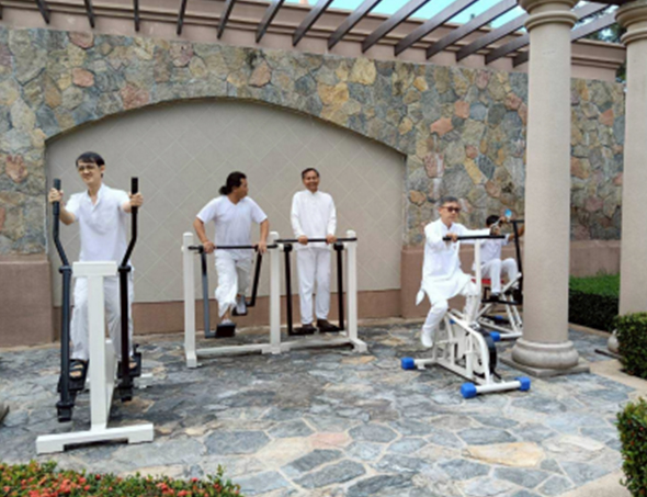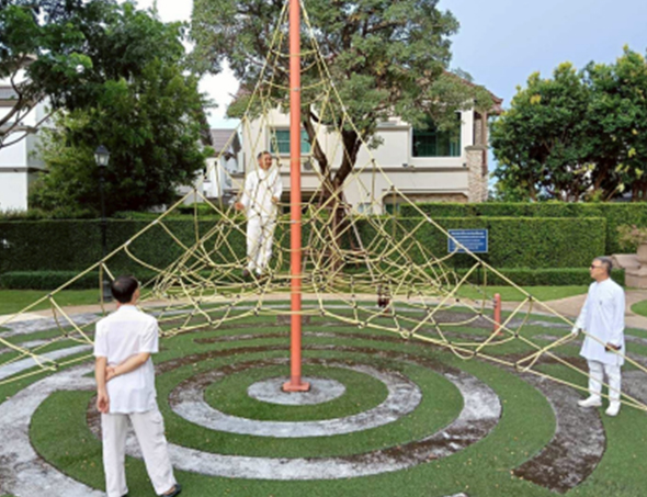 เสร็จพิธีแม่ปุ๋ยแจกบัตรวัว เชิญชวนเปลี่ยนลบเป็นบวก อันส่งผลต่อการรักษาสัญญา เราพากันไปออกกำลังกายในสวนหน้าบ้าน ซึ่งจัดเครื่องเล่นให้สุภาพบุรุษกลายเป็นเด็กซุกซน