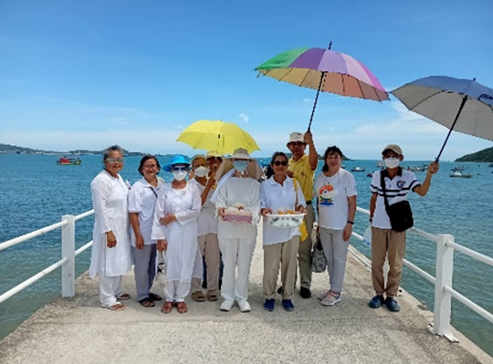 10-12 ส.ค. สร้างครอบครัวหัวใจเดียวกัน เพื่อเป็นของผู้เดียวเท่านั้น พี่หล้าได้รับมอบเถ้ากระดูกของแม่เจ้า (มารดาผู้ละร่างไป 29 มิ.ย.-ช.ม) มาจัดระบบครอบครัวทางจิต สำหรับการลอยอังคาร ที่สัตหีบ, ชลบุรี 10 ส.ค. เช้า พี่น้องจากบ้านนางฟ้า-นครศรีฯ จากกทม. และจากจันทบุรี ออกเดินทางแต่เช้าตรู่ มุ่งสู่สัตหีบ, ชลบุรี พี่ภาและพี่หญิงไปถึงบ้านพัก SEA MAN ก่อนใคร เพื่ออำนวยความสะดวกเรื่องที่พักและอาหาร ได้ส่งภาพแกว่งไกวชิงช้าแห่งความสุข-เบิกบานใจ กับบรรยากาศใกล้ทะเล