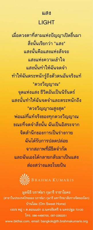 - แนะนำหนังสือชีวิตอมตะ อธิบายภาพจากการสรุปบทเรียนราชาโยคะซึ่งแม่เจ้าได้ช่วยแปลหนังสือในช่วงแรกกับพี่อ้อยและน้องมิ้น(ลูกสาวเจ้าดวงเดือน)