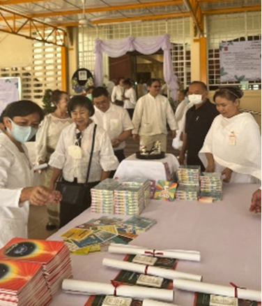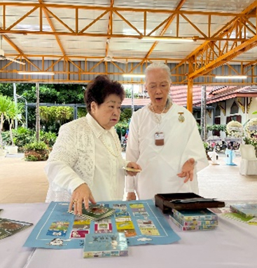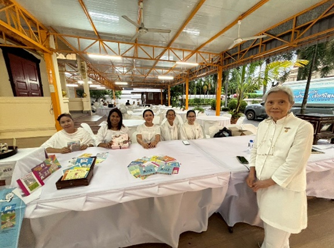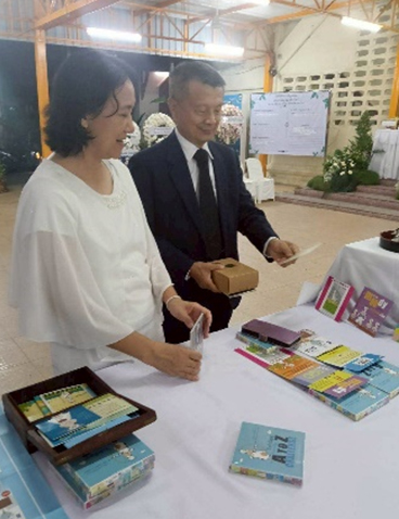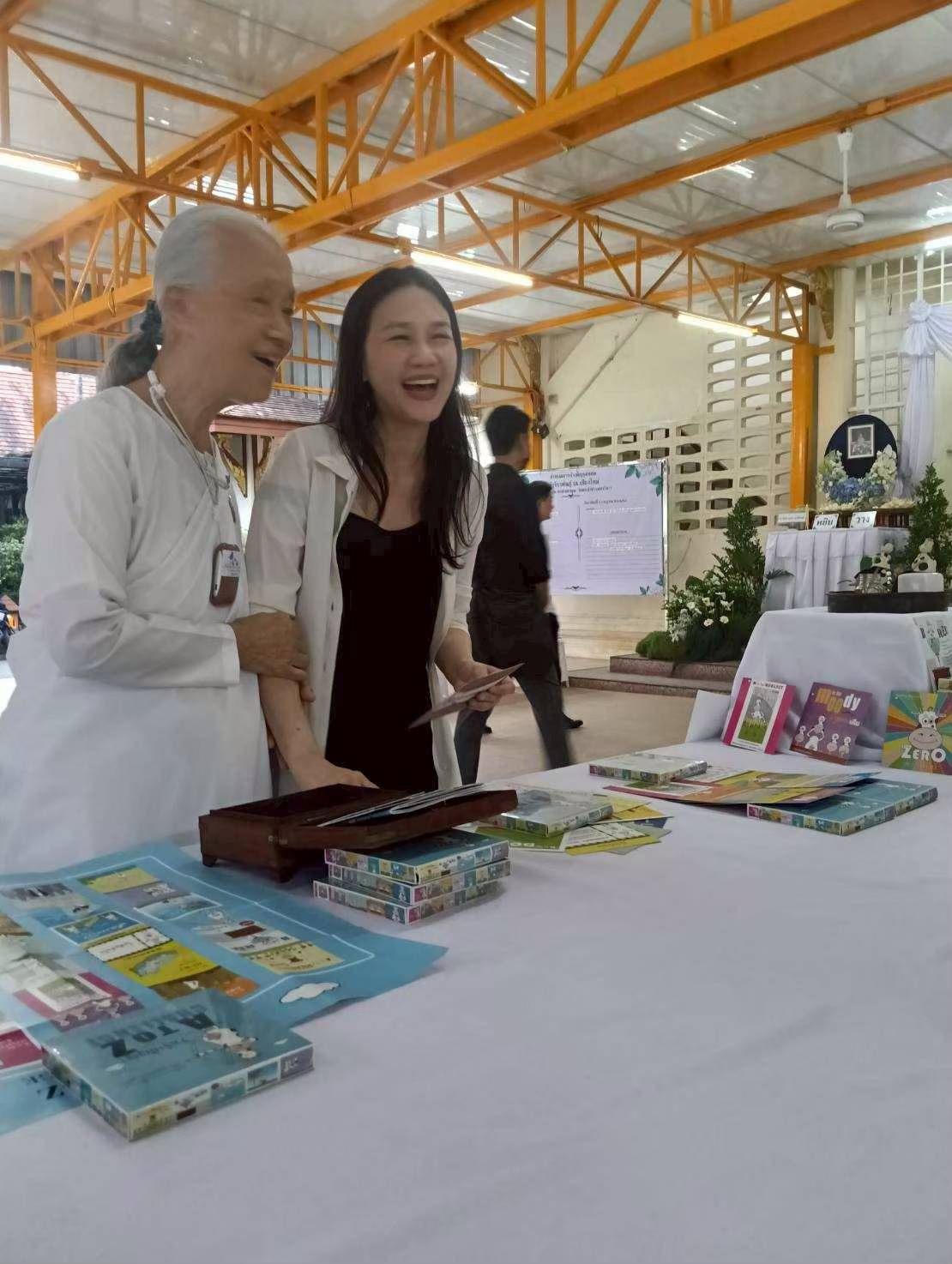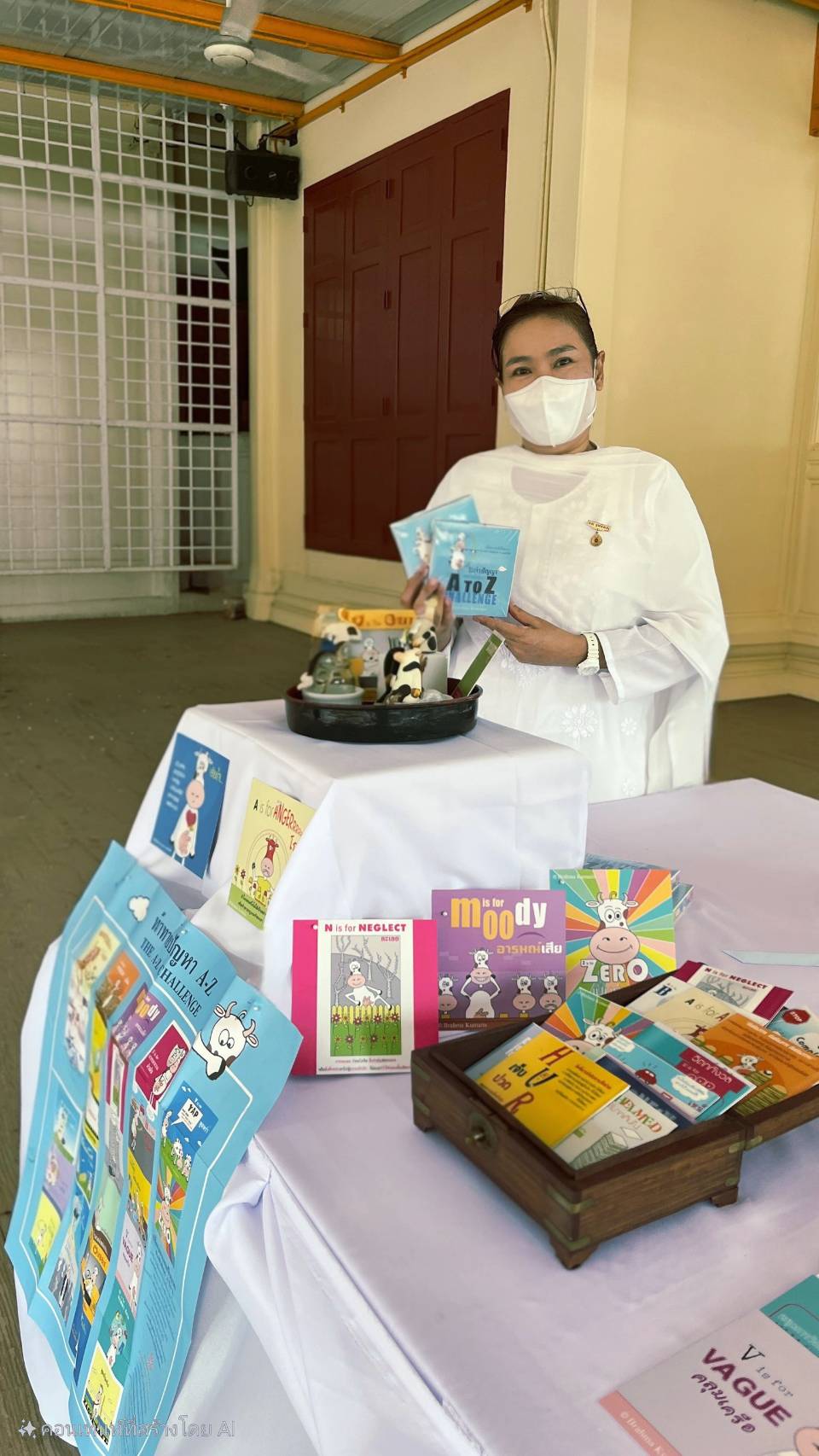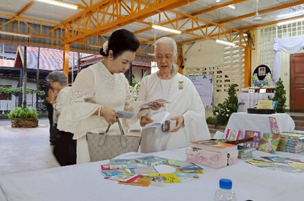อยู่ฝ่ายรับแขก แจกหนังสือและของที่ระลึก
