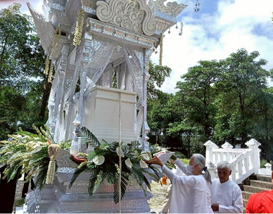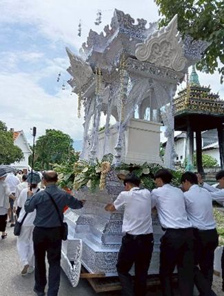 ภายนอกศาลาพี่จ๊ะได้ออกแบบปราสาทเงินที่เรียบง่ายที่สุด สำหรับการฌาปนกิจศพ-ตามที่แม่เจ้าแสดงเจตจำนง