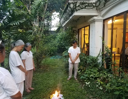 - สื่อสารกับผู้เป็นมารดาในวาระสุดท้าย ขณะที่ดวงวิญญาณ(ท่านเอง)อยู่นอกร่างกาย โดยได้จัดช่วงเวลาครึ่งชั่วโมงก่อนพระสวด ช่วงเช้า ก่อนเที่ยง เย็นก่อนทุ่ม ประมวลเนื้อหาสาระที่เป็นประโยชน์ต่อการตระหนักรู้จักตนเอง เป็นการเตรียมให้แม่เจ้าเดินทางไปสู่ร่างใหม่ ชีวิตใหม่ในครอบครัวใหม่ที่ดี รวมทั้งทำให้ญาติมิตรที่อยู่ในชุมนุมได้สัมผัสบรรยากาศของครอบครัวที่มีเรื่องราวดีๆจากหัวใจมาแบ่งปันกันในสิ่งที่แม่เจ้าประทับไว้ในความทรงจำ