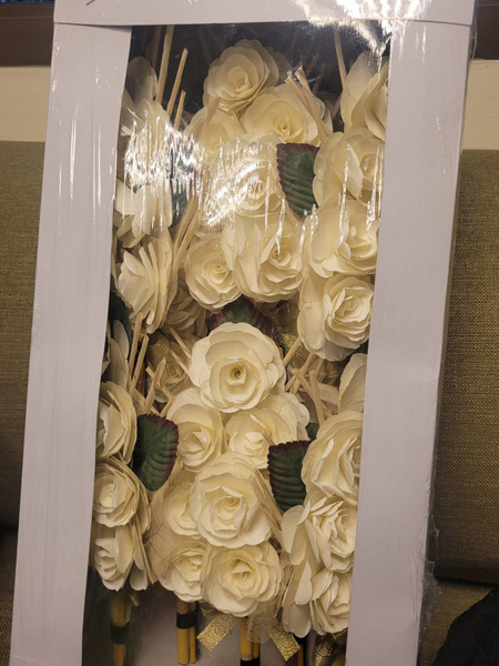 โอกาสนี้น้องสั่งดอกไม้จันทร์ประดิษฐ์เป็นดอกกุหลาบสำหรับแขกเคารพศพก่อนเผาในศาลา