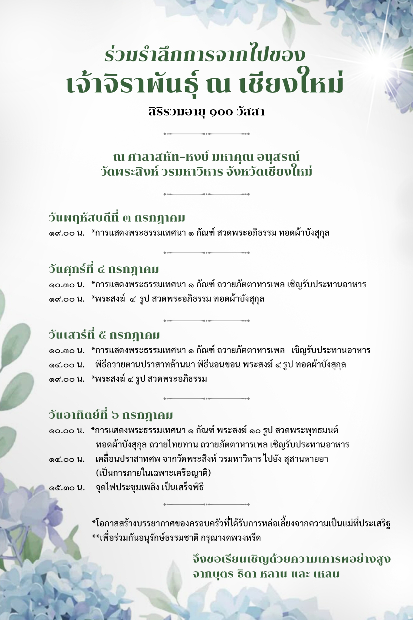Spiritual Tribute to Chao Jiraphan Na Chieng Mai in her Funeral Ceremony on Sunday 6 July 2025 at Wat Phra Singh Woramahawihan, Chiang Mai.(Chairat)