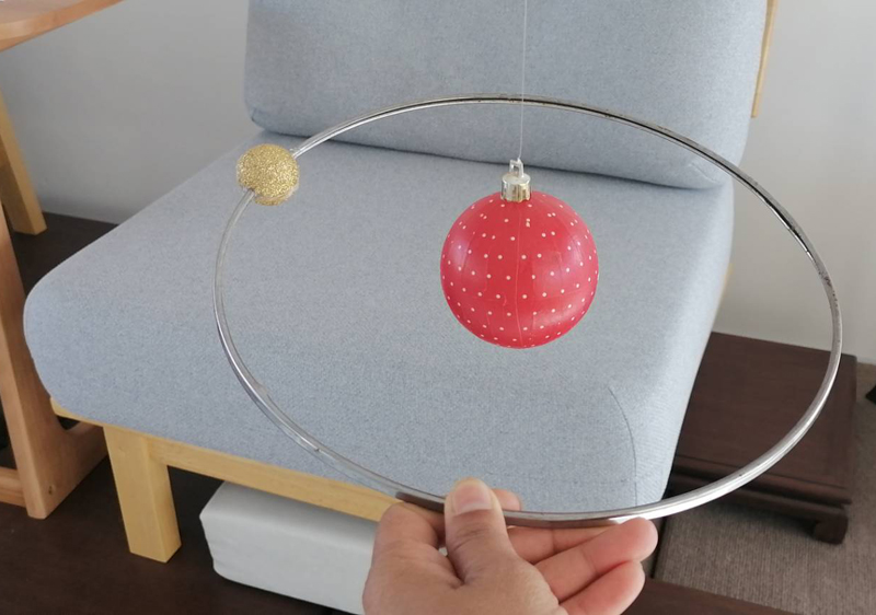ให้ชัดเจนมากขึ้น น้องวรินทร์ธรช่วยสร้าง Prop ในเวลาอันสั้น โดย ลูกบอลเล็กสีแดงมาแทนดวงอาทิตย์ที่ตรึงตัวเองอยู่กับที่ ที่จุดศูนย์กลาง