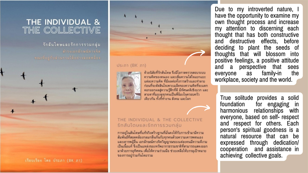 คลิกเปิด หนังสือ The Individual & the collective ที่พี่ภานำไปเสริมสร้างประสบการณ์ เสียงพี่ภา(คลิกฟังเสียง) เสียงพี่อ้อย(คลิกฟังเสียง) เสียงพี่วิชญ์+พี่อ้อย(คลิกฟังเสียง) 'ถอดเสียงการสัมภาษณ์หนังสือ' รักสันโดษและรักการรวมกลุ่ม (คลิกอ่านต่อ)