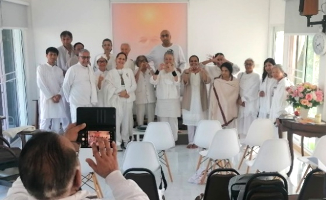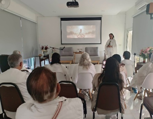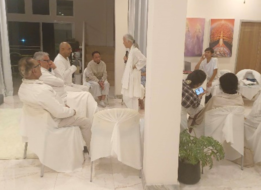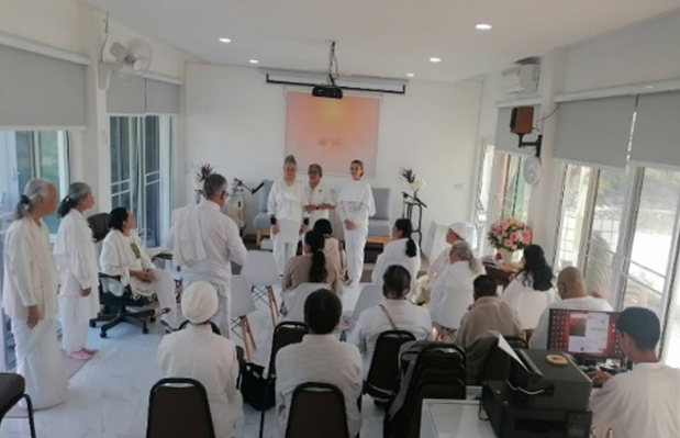 คลาสเช้า /บราเทอร์ปารามจิต หัวหน้ากลุ่ม UK 10 คน แบ่งปันข้อคิดและนำการฝึกจิต