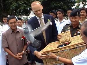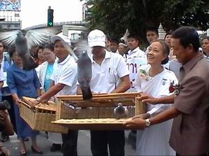 มีการปล่อยนกพิราบ ซึ่งเป็นสัญญลักษณ์ของความสงบ
