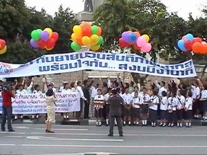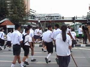 และนักเรียนวิ่งออกจากอนุสาวรีย์ฯเพื่อไปแจกดอกกุหลาบให้กับประชาชนที่อยู่บริเวณรอบ ๆ อนุเสาวรีย์