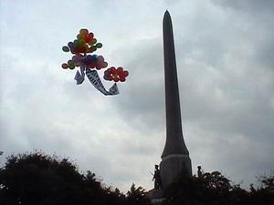 หลังจากนั้นมีการปล่อยป้ายและลูกโป่งขึ้นสู่ท้องฟ้า