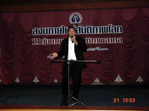 พลตรีจำลองถ่ายภาพร่วมกับ B.K.สไบทิพย์ ประธานโครงการสงบพบโลกใหม่และทางขวากล่าวนำเปิดรายการ