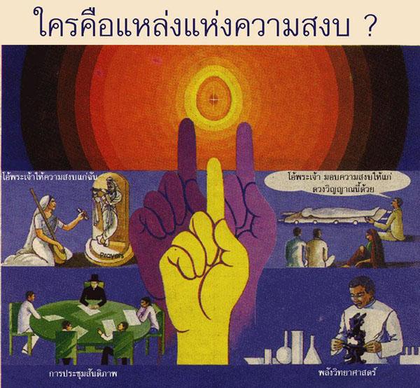 ความสงบที่แท้จริง ได้มาจากพระเจ้าเพียงผู้เดียว ผู้เป็นมหาสมุทรแห่งความสงบ ส่วนความสงบและวิธีการที่มนุษย์เพียรพยายามเพื่อให้ได้มานั้น มีผลเพียงชั่วคราว อาทิเช่น