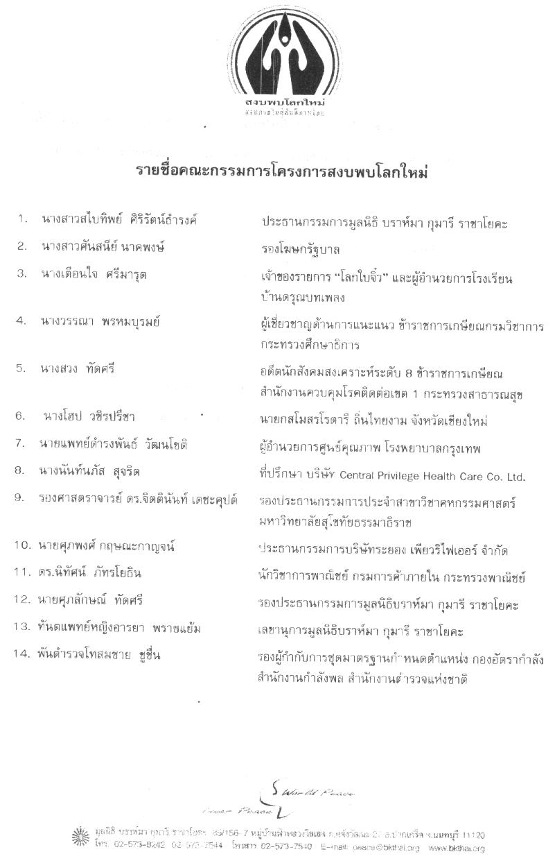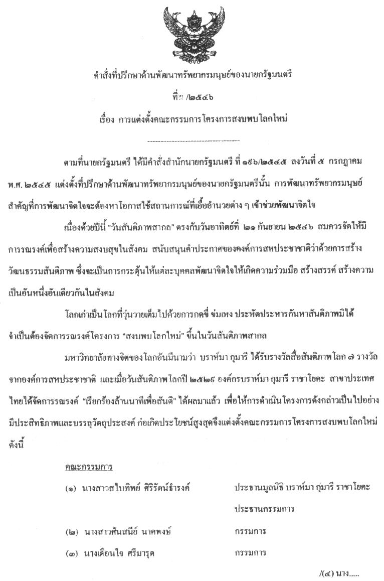 ได้แต่งตั้งคณะกรรมการโครงการสงบพบโลกใหม่
