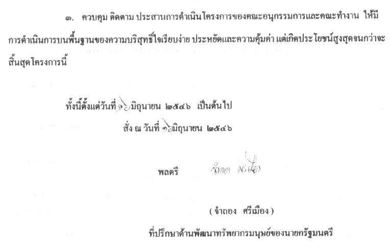 โดยมีพลตรี จำลอง ศรีเมือง ที่ปรึกษาด้านพัฒนาทรัพยากรมนุษย์ของนายกรัฐมนตรี