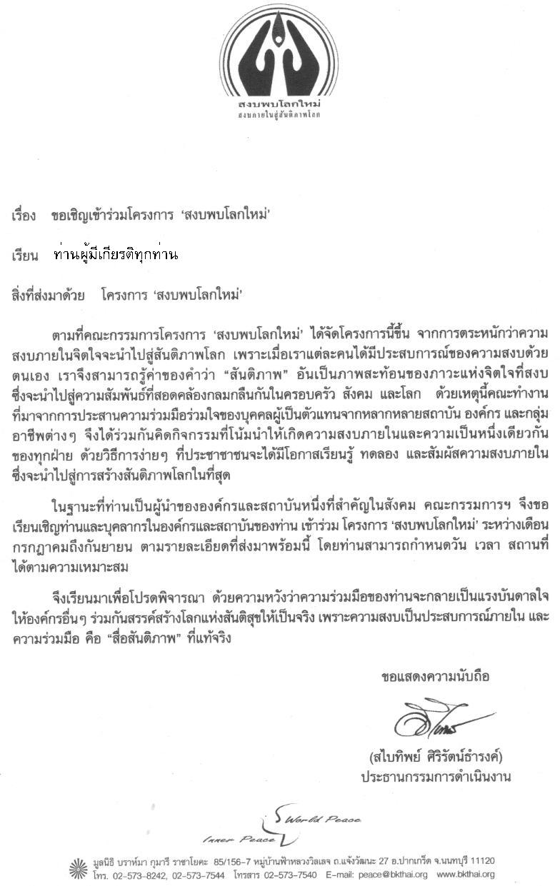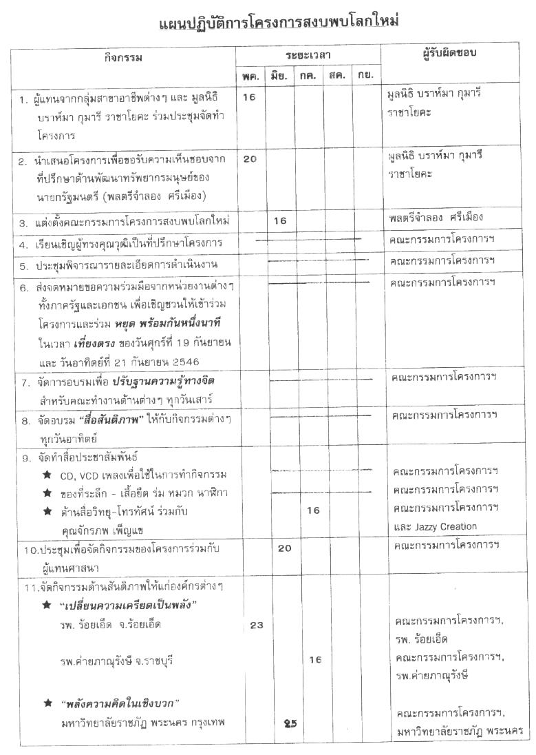 เมื่อเดือน พฤษภาคมปี 2546 ได้มีการประชุมเพื่อกำเนิดโครงการ 'สงบพบโลกใหม่'
