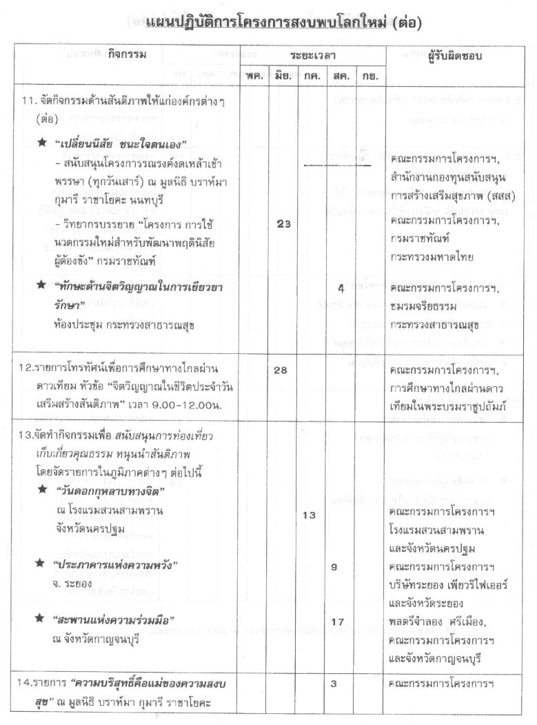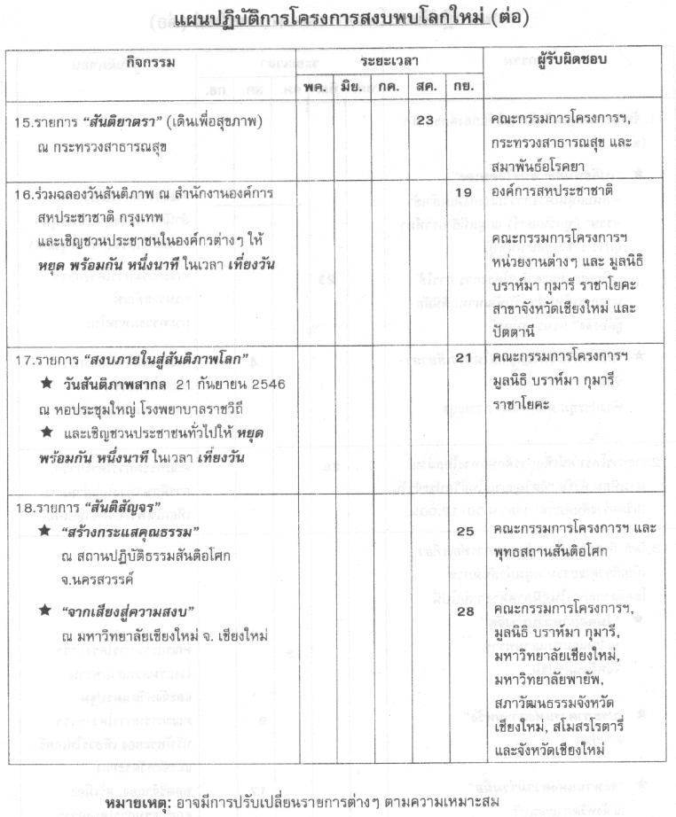 ขึ้น โดยจะมีการดำเนินงานในรูปแบบต่าง ๆ เพื่อรณรงค์ให้ทุกคนสร้างความสงบขึ้นจากภายใน ในรูปแบบต่าง ๆ