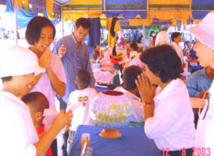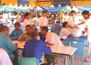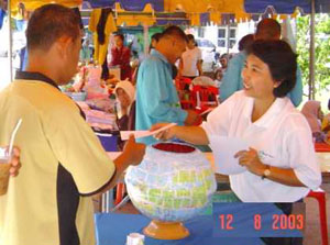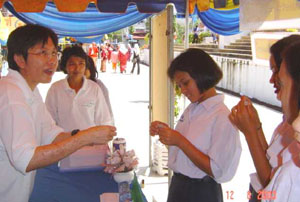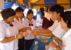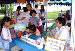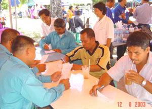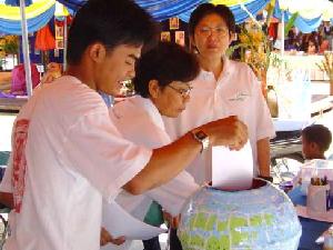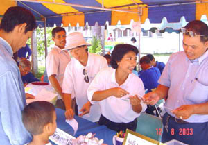 ร่วมกรอกแบบสอบถามของโครงการฯ ภายในเต็นท์ของศูนย์ประสานงานองค์กรเอกชน